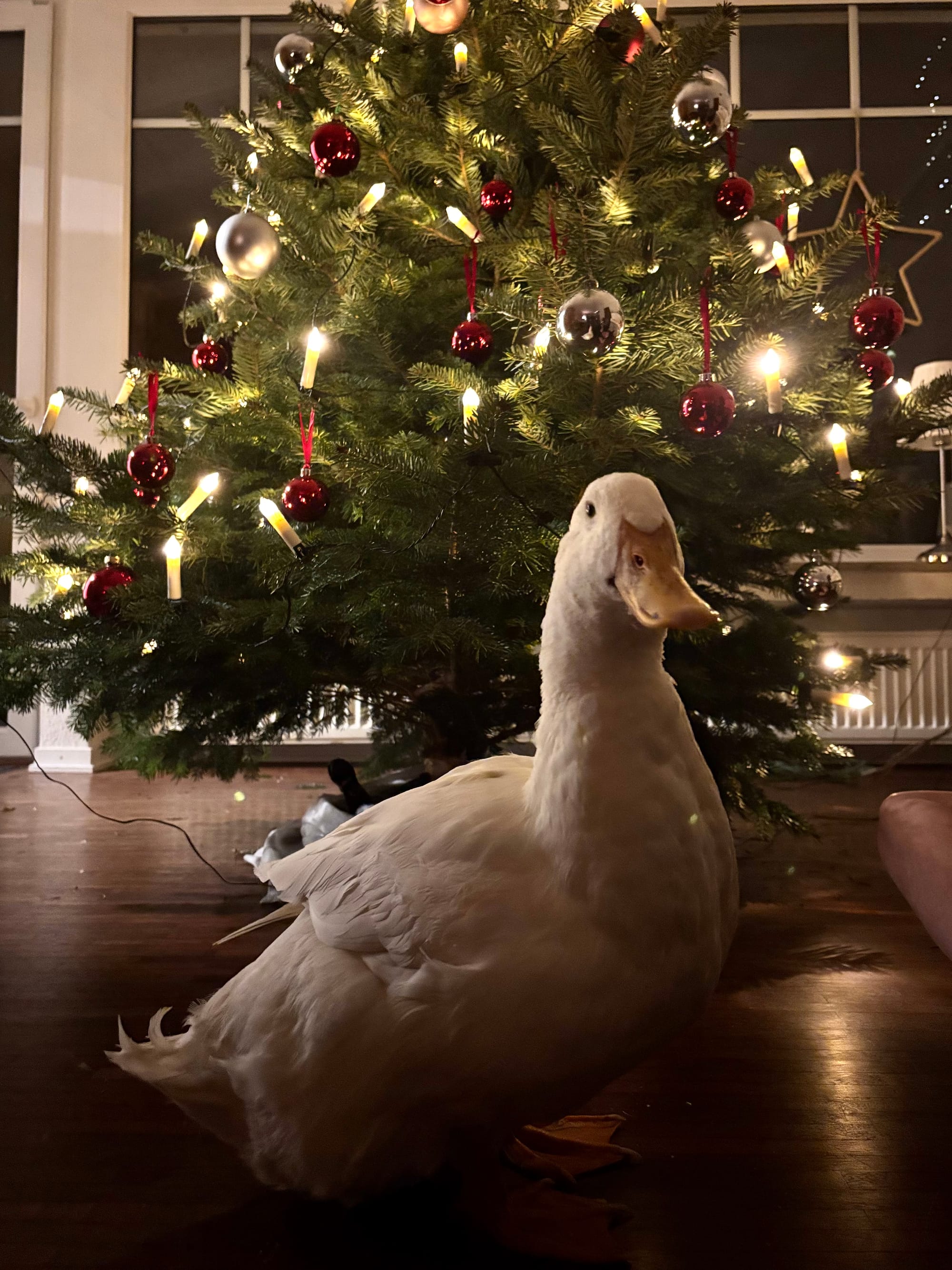 Aber ich hätte mir vor einiger Zeit auch niemals vorstellen können, dass einmal ein Erpel namens Hilde bei uns wohnt, ganz selbstverständlich in unserem Wohnzimmer steht und unseren Weihnachtsbaum bestaunt.