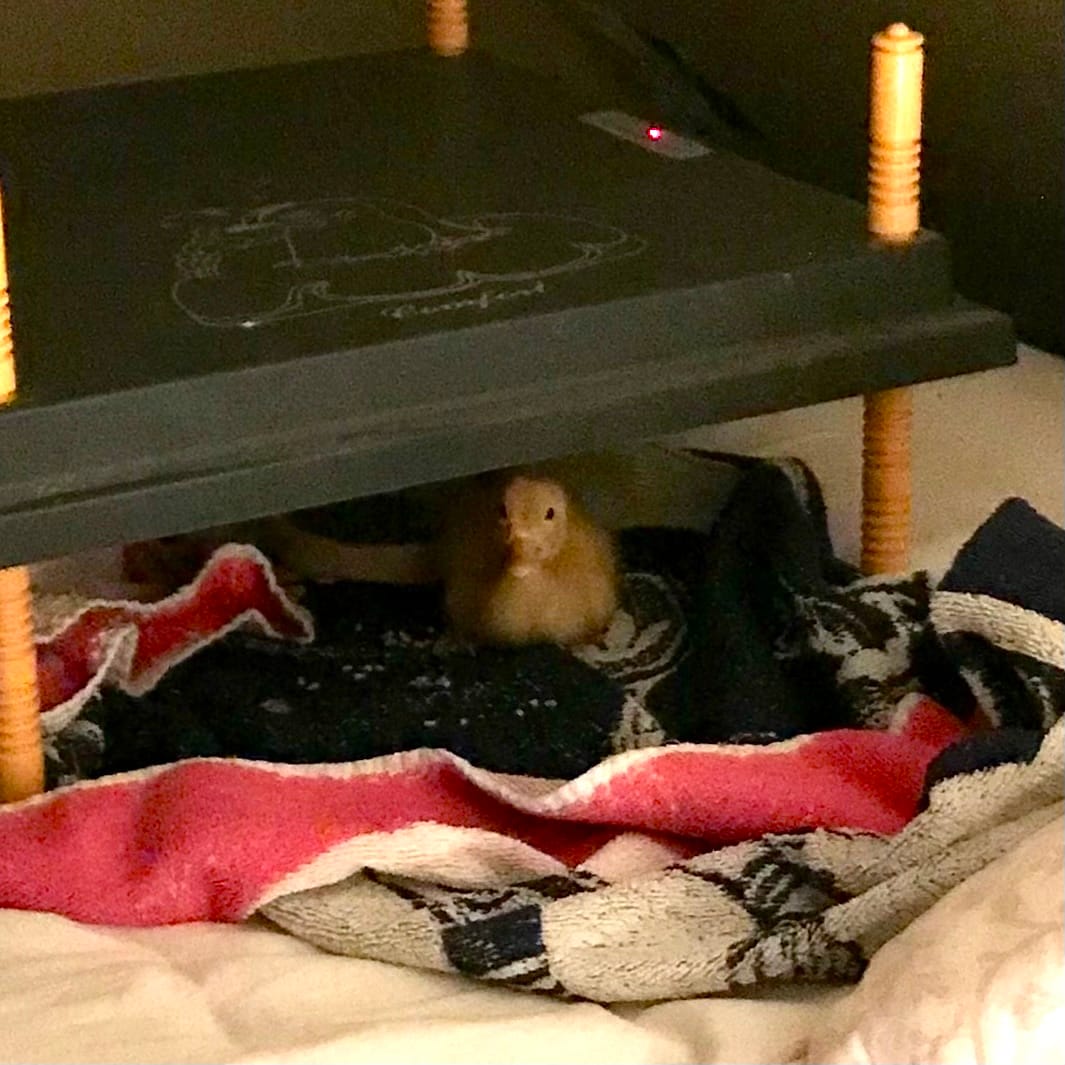 Auch am nächsten Morgen war das Küken nur ruhig, wenn es auf dem Arm war. Doch leider mussten alle entweder zur Arbeit oder zur Uni. Und die Vorstellung, das Küken den ganzen Morgen aus seiner Einsamkeit heraus piepen zu lassen, war nur schwer zu ertragen - eine wahrhaft herzzereißende Situation.